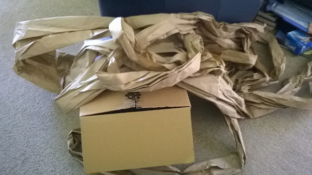 I've carefully ironed it and cut it into lengths, some to share with the card making group, some to put in the kitchen to use for lining cake tins and some to put in the wrapping box.